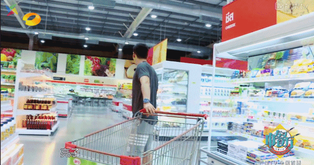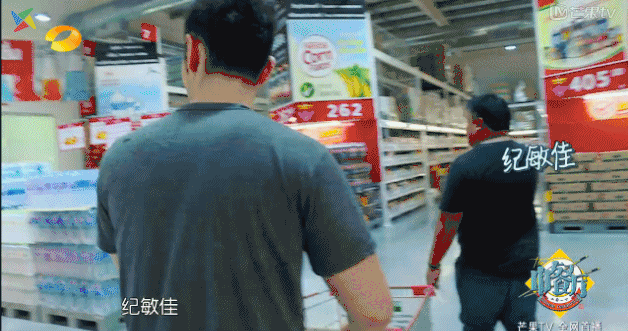 在超市采购准备开店的东西的时候,黄晓明成了无处不在的节约管家。