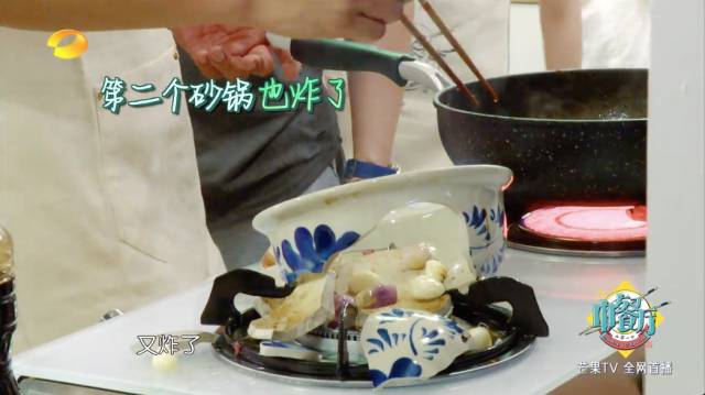 试菜时,大厨张亮做个砂锅鱼头,还弄炸了两个砂锅,大厨肯也是活久见~~~难不成砂锅水土不服,哈哈~