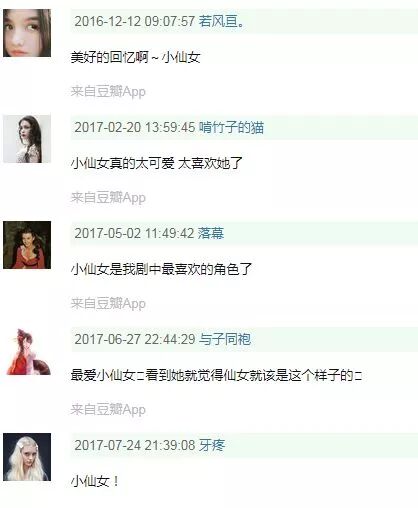 豆瓣上小仙女的剧照下,全都是给小仙女表白的评论。