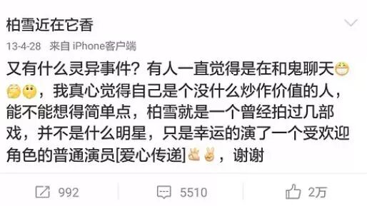 用她的话来说,柏雪不是明星,只是幸运的演了一个受欢迎角色的普通演员。