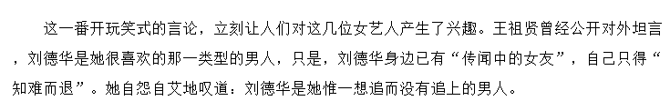 自己爆料说追不到刘德华。开放如今日的娱乐圈,也没有哪个女明星会这样讲吧,小贤你好有种哦。