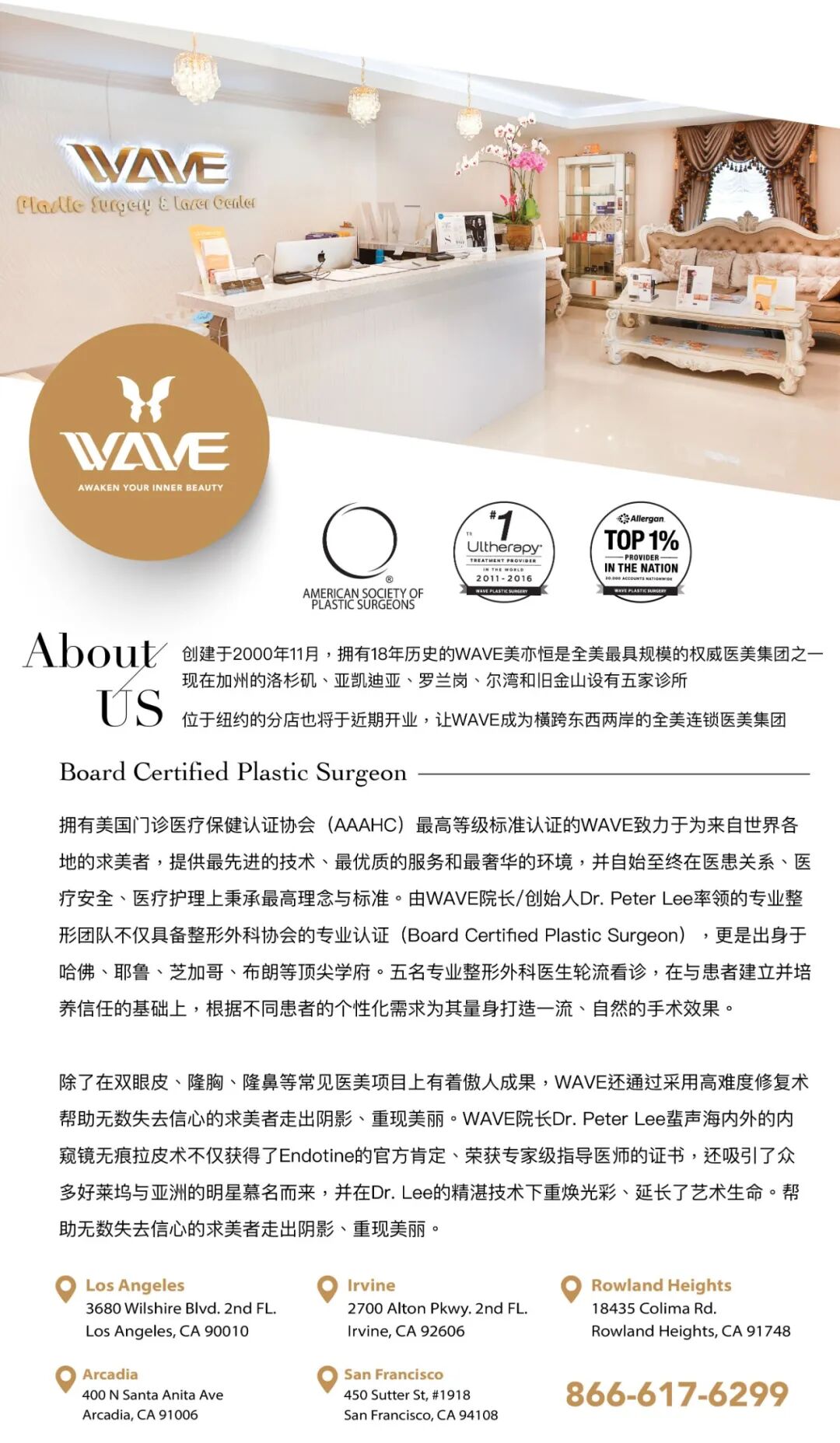 如果还想了解更多医美详情,制定最适合你的情况的治疗方案,可以通过我们的电话 [866-617-6299]进行咨询,我们会安排最专业的中文咨询师与你联系。也可以在我们的微信公众号 [WAVE整容整形] 的后台留言