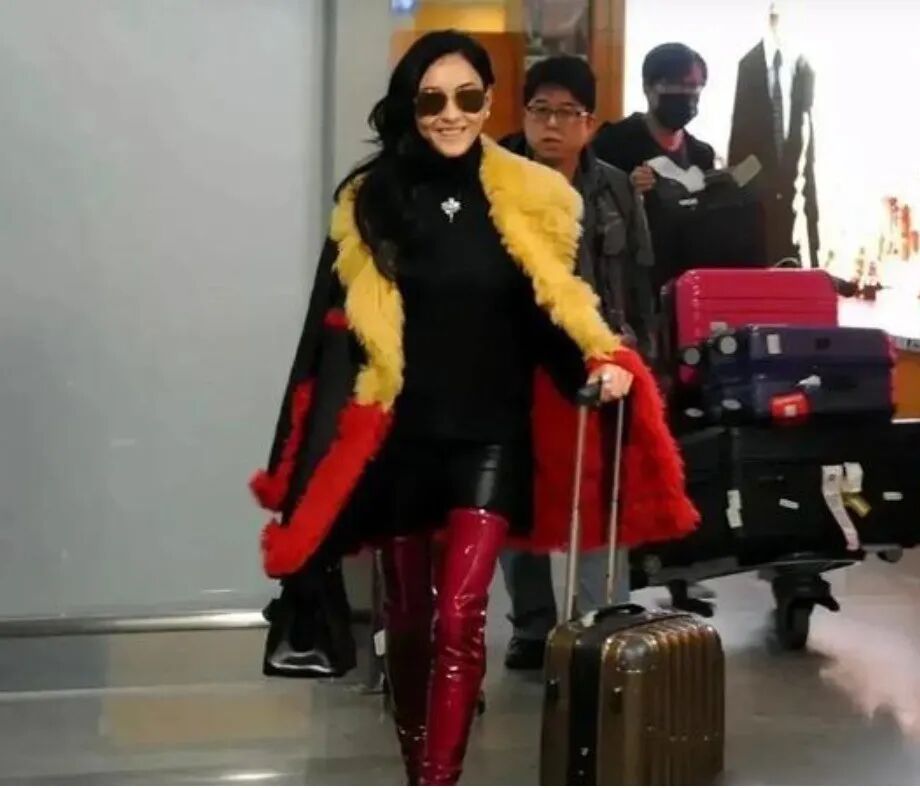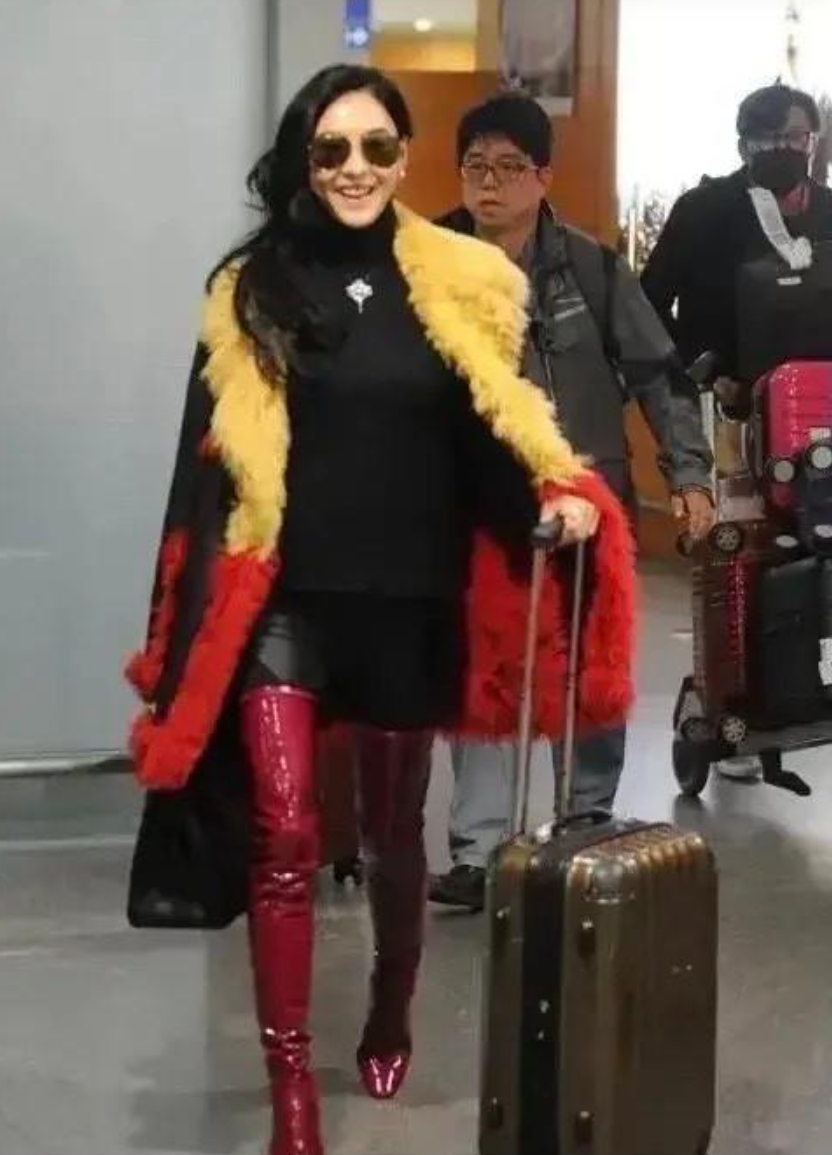 张柏芝用一身大胆的机场造型,为沉闷的季节注入了一抹独特的色彩。