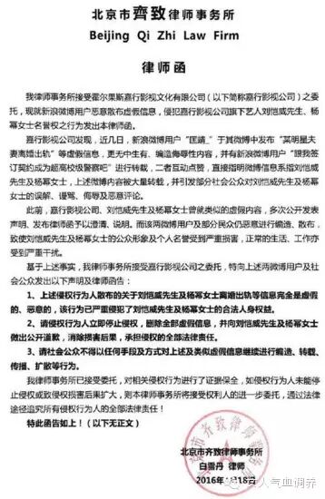 是可忍,孰不可忍。日前,刘恺威的经纪公司通过官方微博发出律师函,对近期网上流传的离婚谣言做出了强烈的严正声明,并且声称要追究那些造谣者的法律责任。