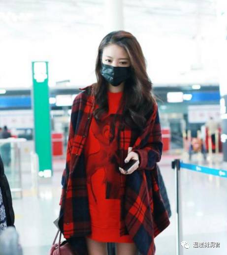 安以轩身上的黑红格子披风配上黑色的长靴,看起来醒目、活力又靓丽,真的让小编惊艳了一把。长发放下,底部微卷,又显得特别有淑女范。虽然黑色的大口罩遮住了她半边脸,但人们依稀还是能想象出她那迷人的五官。