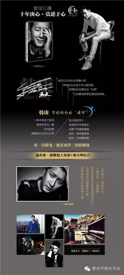 ★韩庚首次以文字形式坦露心声,倾情告白出道十年心路历程,回馈粉丝自爆生活“私照”;附赠超大海报+莫逆于心明信片一套(5张)