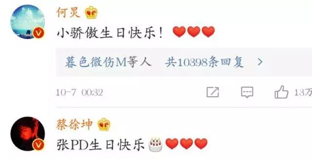 在昨日微博生日动态自动发出后,大概在半个小时以后何炅老师就在底下评论说:“小骄傲生日快乐!比心比心”