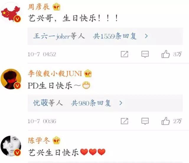 不仅仅和他同乡的何老师送上了祝福,极挑兄弟们也一起在这第四个年头毫不例外的送上自己的祝愿,真是亲兄弟。尽管这些人都作为他的前辈,但是却都十分疼他,艺兴今天所取的成就在一定程度上与他们的帮助是密不可分的。