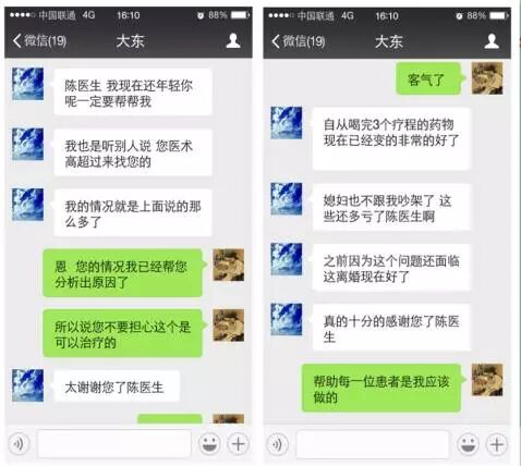 上面都是我的真实经历,考虑了很久我才决定把它分享出来,一来对陈老师表示感谢,二来想帮助更多的男性朋友早日摆脱男性疾病的痛苦!