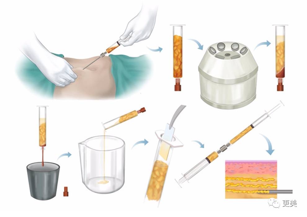 其实自体脂肪填充就是将腰、腹、臀、大腿等容易脂肪堆积处的脂肪用注射器、水动力吸脂仪抽出,再处理成净化脂肪颗粒后,注射到面部各个需要填充的部位