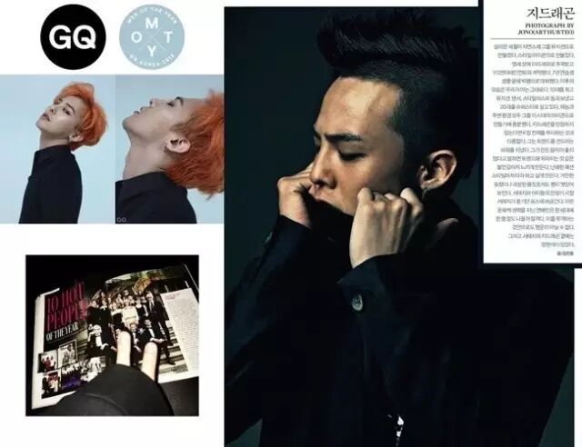 时尚品味独特、具有个人风格的权志龙,在去年也被时尚杂志《GQ》、《GRAZIA》、《Esquire》,分别被选为 2015 年度男星、2015十大热门人物、时代男星。