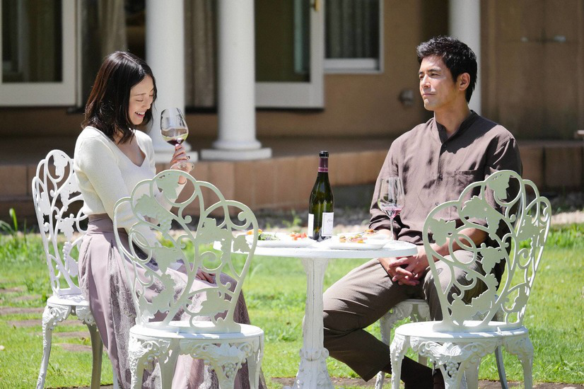 ▲若林和也(伊藤英明饰)和妻子(泽井美优饰)在院子里吃午饭 / 剧照