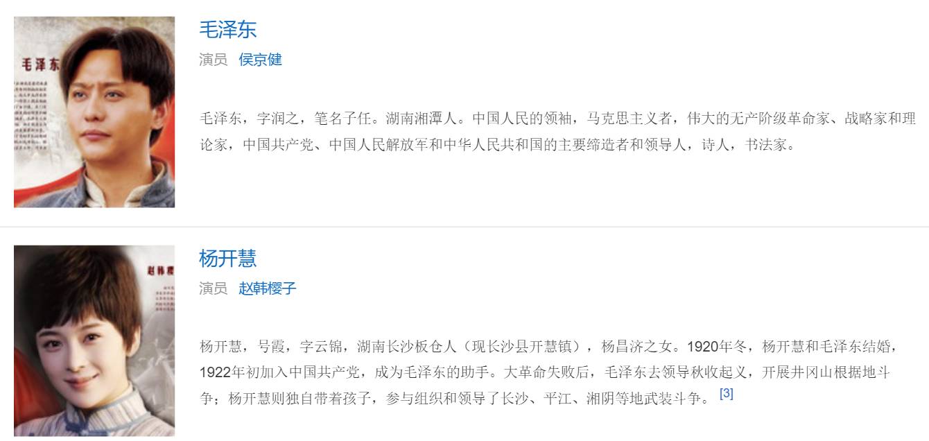 侯京健饰演一代伟人毛泽东,韩赵樱子饰演毛泽东妻子杨开慧。