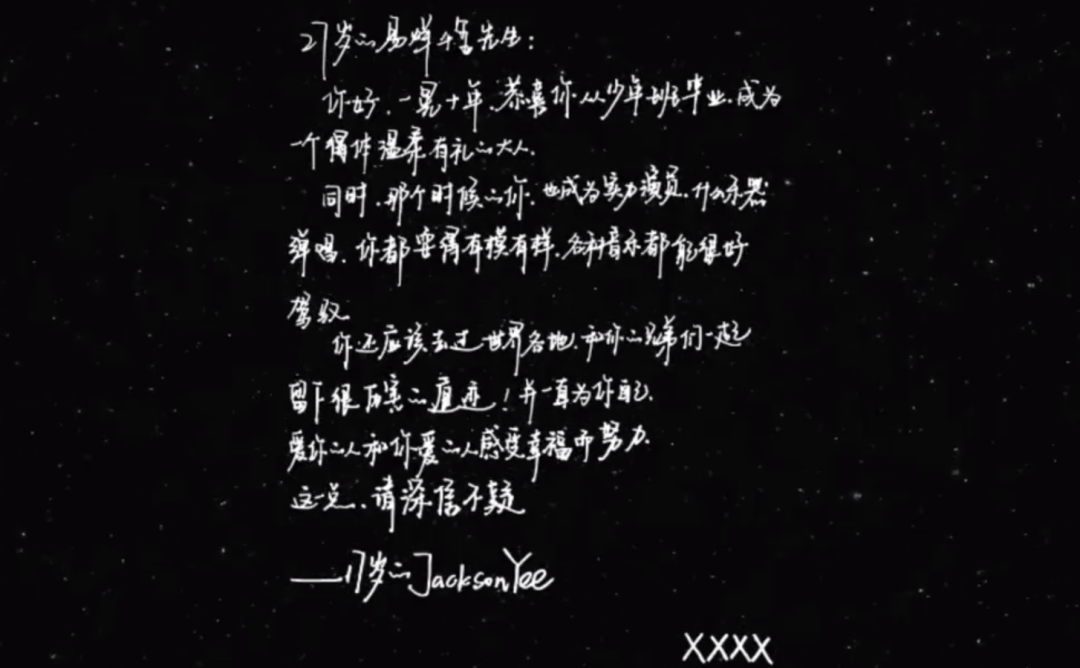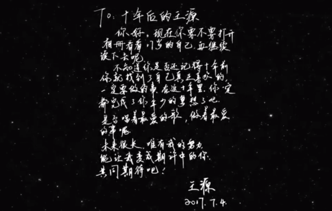 在TFBOYS十周年演唱会上,大银幕上特别回顾了他们在2017年写给自己的信。