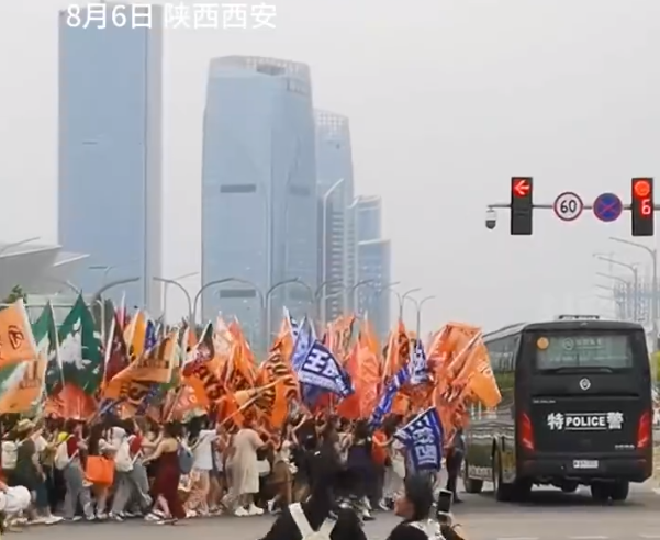 8月6日,演唱会开始前,TFBOYS的粉丝开始举着旗子在演出场地周围巡游。