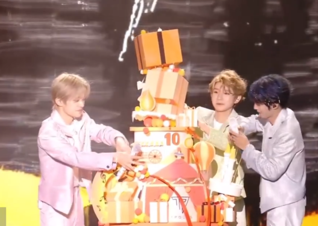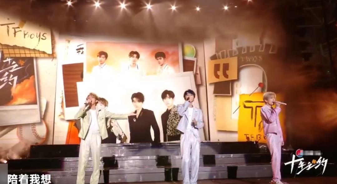 十周年的蛋糕突然塌掉,但这都没有影响三人的演出状态。回望曾经满面羞涩的三个小男孩,十年后的他们早已不慌不乱,王源看着塌掉的蛋糕不忘说一句“就像青春一样,总有一些不完美”,瞬间打了个圆场。