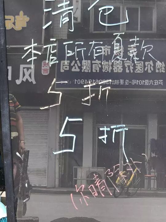 回无锡,出去吃个饭,看到牌子:清仓本店所有夏款,5折——(尔晴除外)