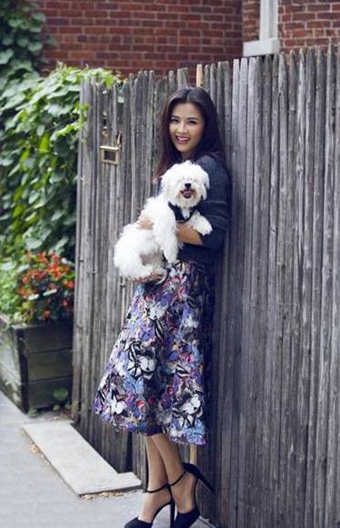 印花连衣裙搭配短款外套,充满了女人味,和刘涛本身的柔美的气质非常像。