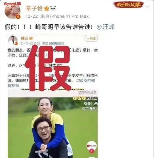2021年12月,香港音乐人黄安爆出章子怡与汪峰已离婚,在那次离婚传言中,当天章子怡就亲自下场辟谣,并在微博艾特汪峰:
