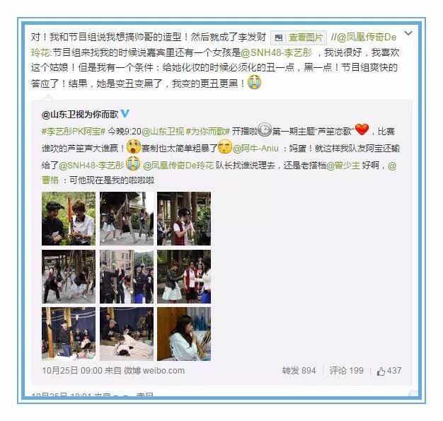相比李艺彤,阿宝的微博则显得简单粗暴的多