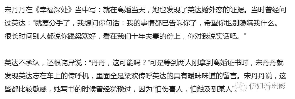事实是,在这场婚姻中,英达婚内已经与现任梁欢暧昧不已,走出民政局,宋丹丹就看到梁欢和他的暧昧短信。