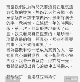 之后没过多久现任林太太丁文琪就上线啦!林宥嘉还通过社交媒体向丁文琪表白,并称放假了会做红豆汤给对方……啧啧,简直大型虐狗现场啊!