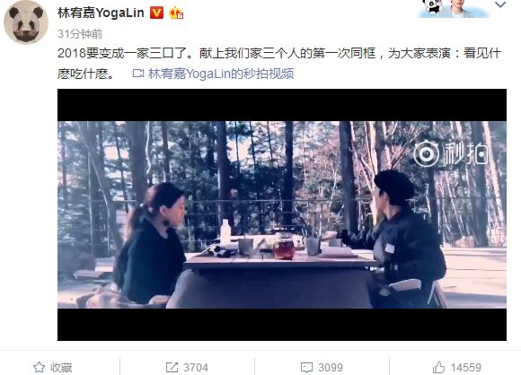 有兴趣的婊贝还可以围观一下林宥嘉微博po出的“一家三口”同框视频,视频中夫妻俩的互动超好玩超有爱的哟!