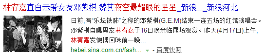 不过与此同时,评论里也有一些瓜众提到了林宥嘉的前女友邓紫棋,emmm,既然如此,黍就顺势来扒一扒咱们的准爸爸林宥嘉的情史好啦!