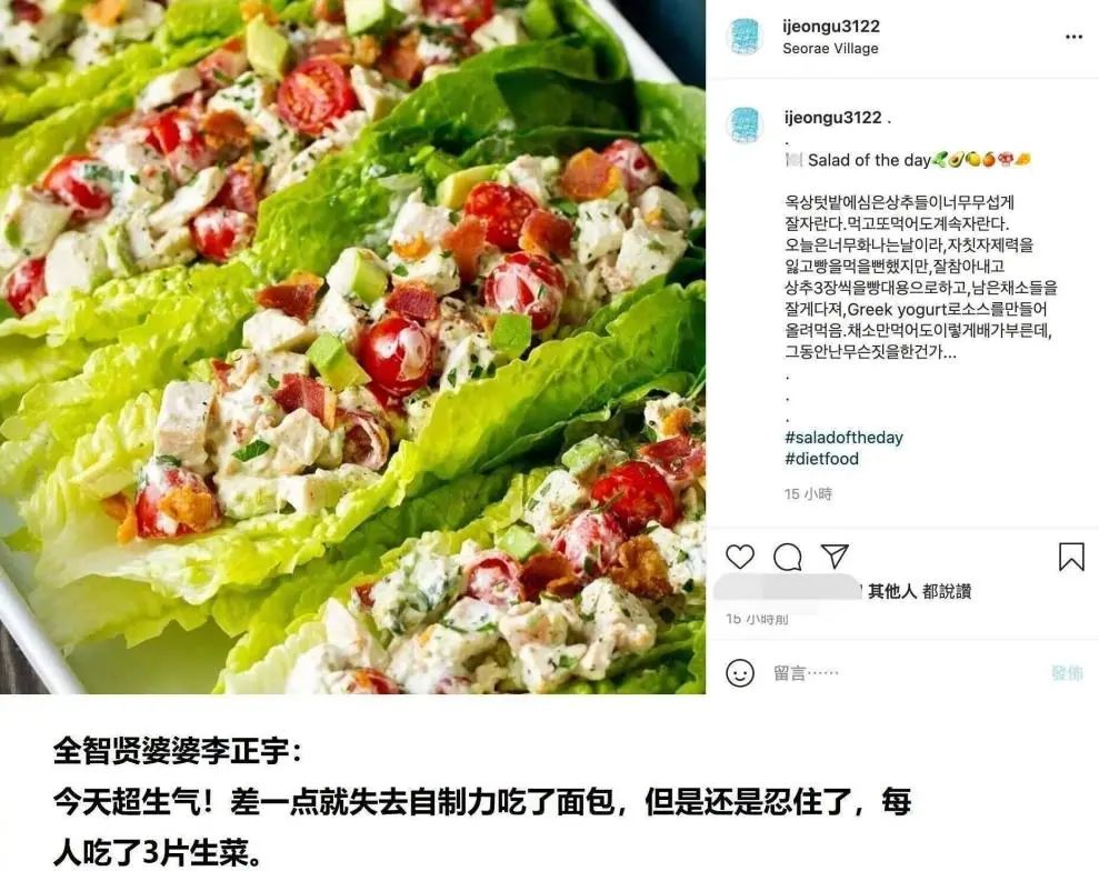 作为常年控制饮食的自律达人,看到新闻「生气不已,差点失去自制力吃了面包,但自己忍住了,只吃了3片生菜」。