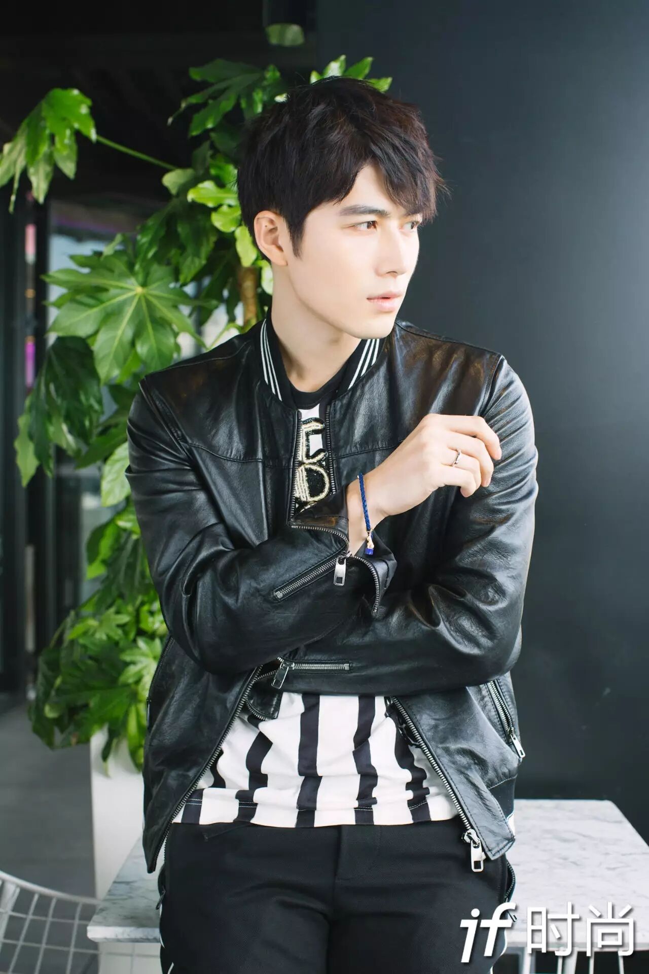 ▲黄景瑜搭配的是紧身皮衣+白衬衫,一条蓝色手链让整套造型显得精致帅气。