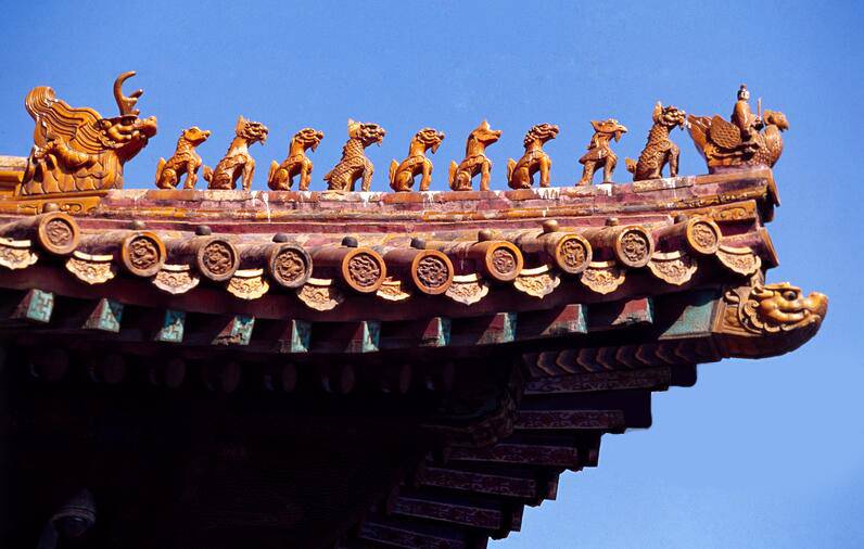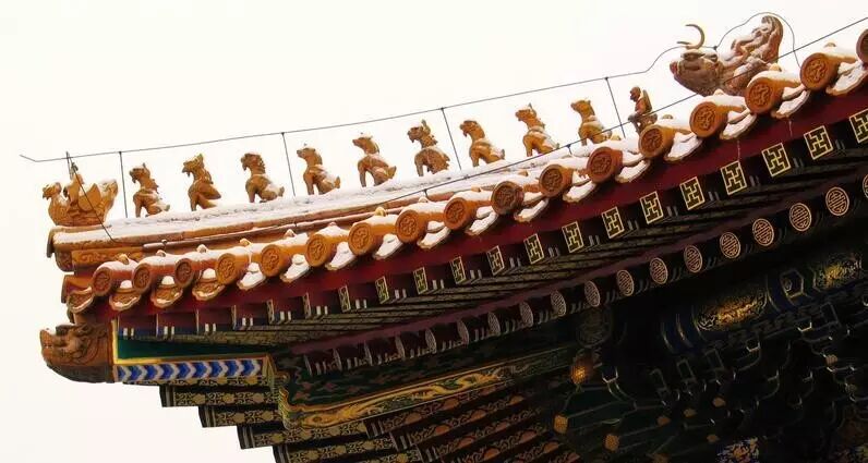 它们在房檐上蹲守了几百年,象征着消灾灭祸,逢凶化吉,还含有剪除邪恶、主持公道之意。古人把建筑装饰上这些龙、凤等等走兽拟人化,象征护卫皇权。