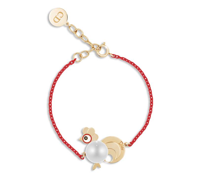▲“DIORELITA” 系列,图为蛇年和羊年设计。镀金+珍珠装饰+红绳,红白两色象征幸运。