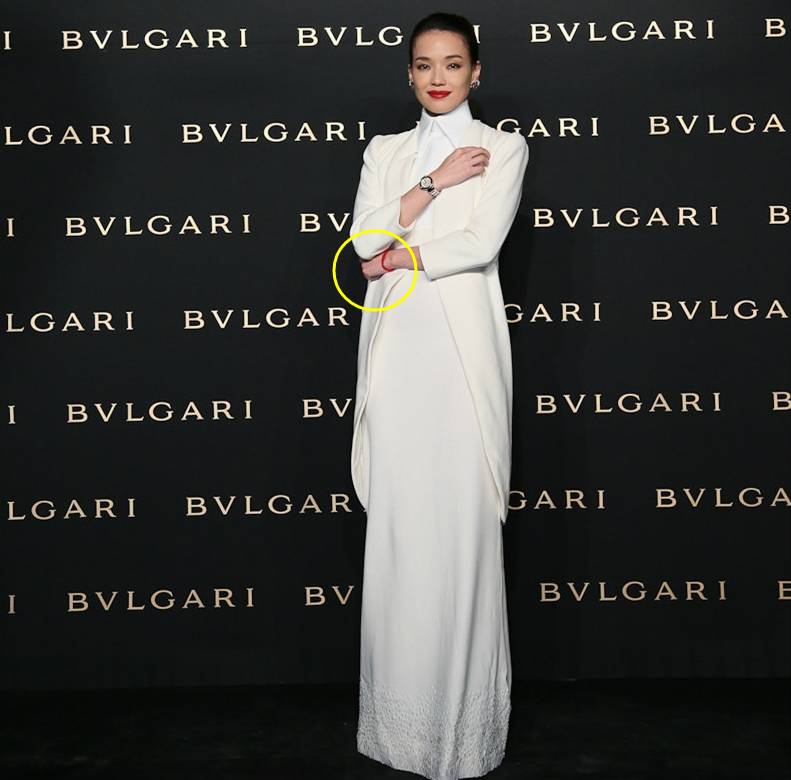舒淇佩戴红绳还闹过一个小乌龙,2014年她成为宝格丽代言人时,曾佩戴过一款红绳。
