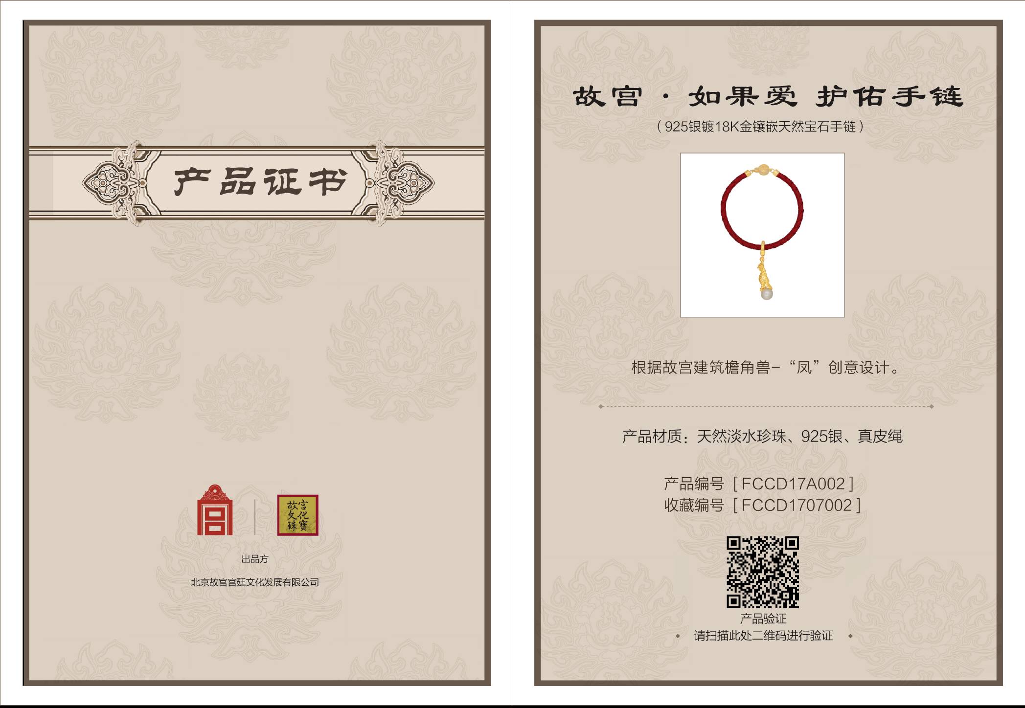 “故宫·如果爱 护佑手链”每款产品都会配有故宫收藏证书。