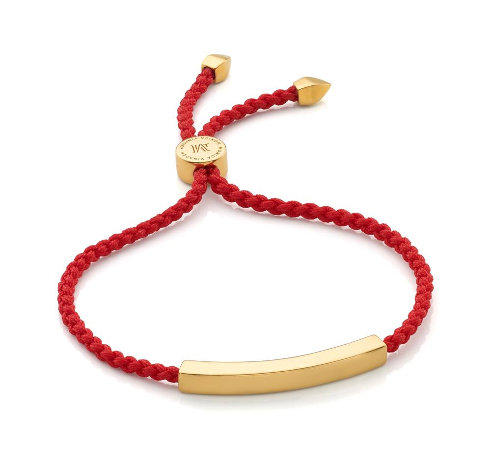 最近一年,Monica Vinader 红绳也掀起了一波热潮。Monica Vinader是英国轻奢珠宝品牌,红绳是其入门款Fiji Friendship Bracelet(又称友谊手链)中的红色款。用编织绳和弧形金属相结合,佩戴起来休闲又百搭。