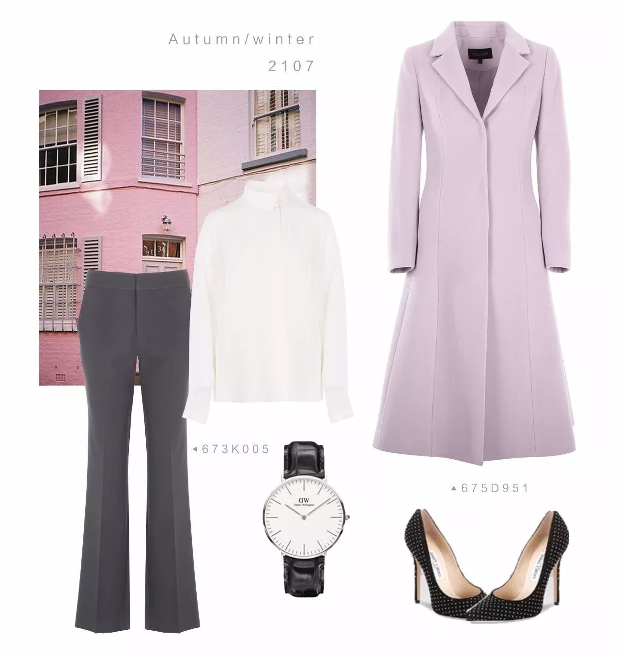 云雾紫和黑白的搭配,气质又有点率性的女人味。