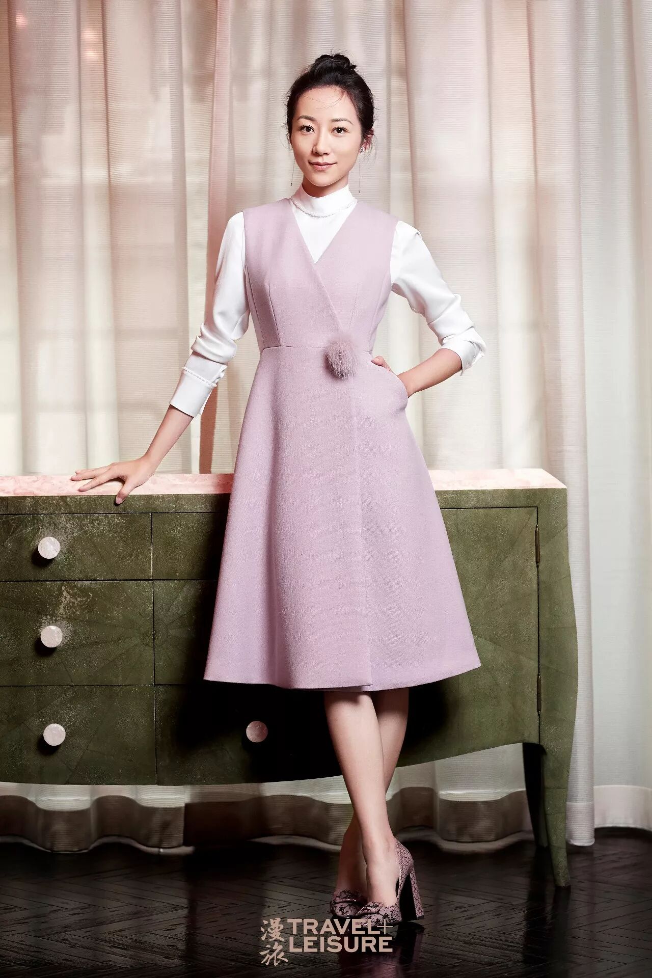 如花朵般温柔甜蜜的云雾紫,是女性的色彩。即使出生军人家庭,韩雪心中仍有一颗少女心。云雾紫背心连衣裙与钉珠真丝衬衣的搭配给人优雅复古的感觉,连衣裙的收腰廓型流露出韩雪柔美的一面。