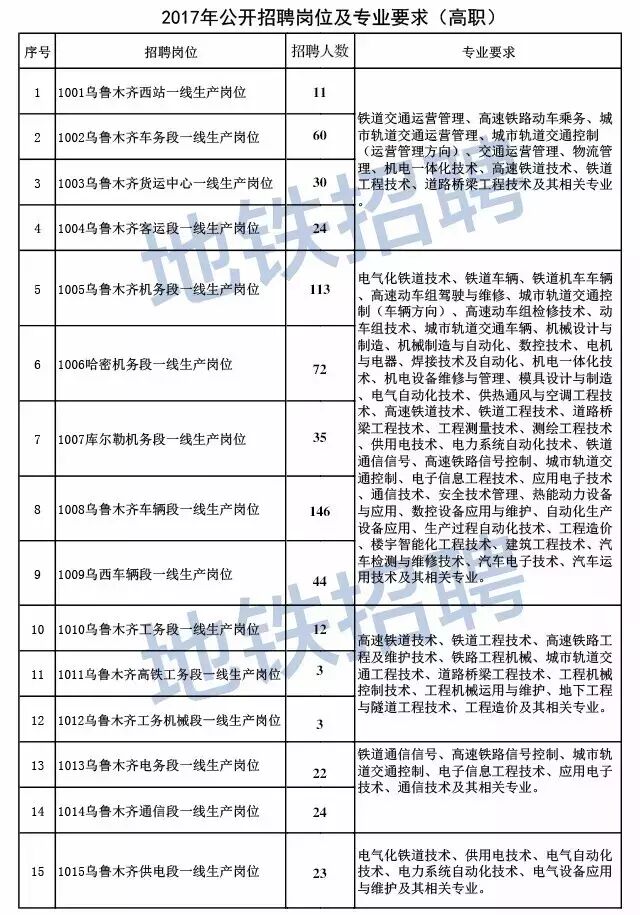 乌鲁木齐铁路局根据运输生产工作需要,现招聘全日制普通高校2017年应届大专(高职)毕业生622人。