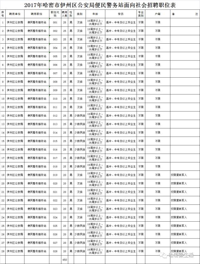 根据哈密市伊州区委、区政府研究决定,拟面向社会招聘便民警务站工作人员650名。