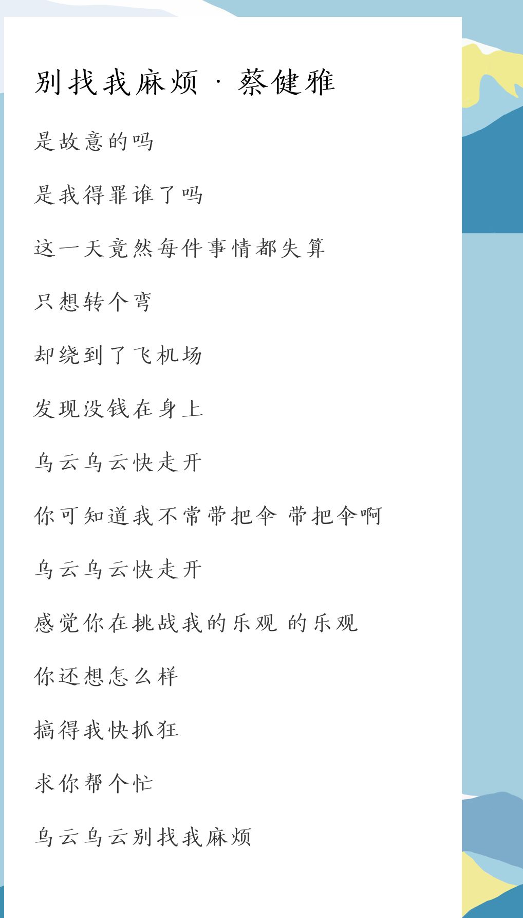 当然,还有很多关于蔡健雅的歌曲!《达尔文》,《重来》,《我要给世界最悠长的湿吻》,《越来越不懂》等等。新学期,新征程,新未来,我们会一直成长,进化成更好的人。