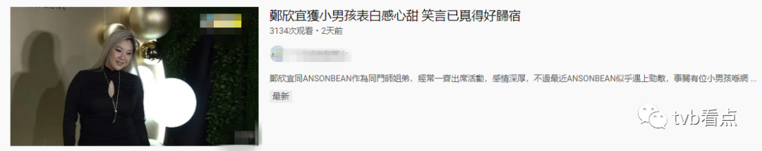 据香港娱乐媒体最新报道,近日,34岁香港女星郑欣宜与同门师弟ANSONBEAN一起出席活动,受访时她大方分享了自己的近况。