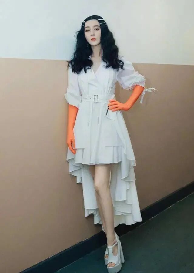 长裙虽比短裙更显气质,但也有压低穿着者身高的风险,想要避免这种情况,可以试试给长裙“剪一刀”,利用开衩设计来打破长裙的累赘拖沓感,同时在视觉上拉长腿型,一米八大长腿即可就能拥有,让整个造型更富有性感女人味。像范冰冰这身造型就穿了件高开衩半身长裙,结合高腰的版型设计,很轻易就能秀出长腿。