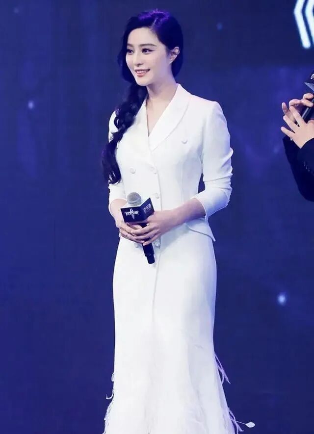 西装裙是由西装外套衍生出来的一款单品,将立体有型的西装版型与裙装结合到一起,不仅保留了西装的干练特质,也能彰显女性更温柔的一面,而连体的款式在穿搭上也更为便捷,完全不用去考虑搭配上的问题。范冰冰身穿的这款裙装便属于西装裙,腰部的收腰设计能勒出纤细腰肢,让整个造型更有气场。