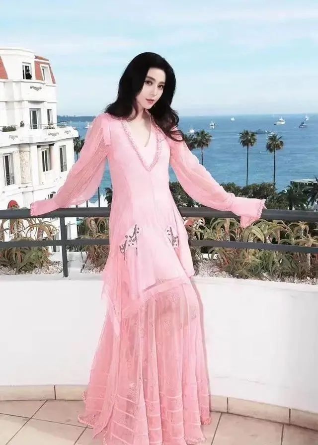 想要把裙装单品穿得足够亮眼吸睛,最简单的方式就是选择亮色系的服饰单品,借助颜色来直观地给人一种视觉冲击感,像常见的浅粉、淡黄这类颜色都是不错的选择,既不挑肤色穿着,也能让人一眼就记住,对穿着者的气质也没有什么要求。范冰冰此身造型就穿了一件浅粉色的连衣裙,V领的剪裁设计结合轻透的薄纱材质,既温柔又带着一丝慵懒调调,整个造型美得让人也不开眼。
