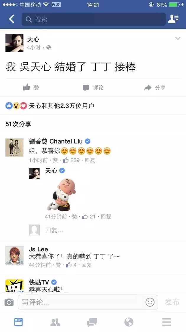 今日,天心突然在社交网站自爆:“我吴天心结婚了”,突如其来的消息,让网友大吃一惊!