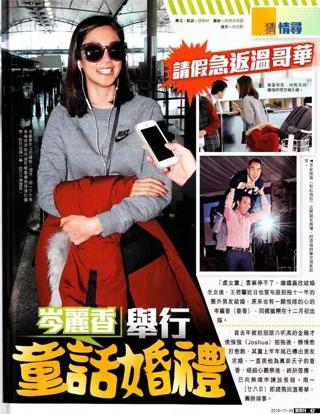 又据香港媒体报道…TVB小花岑丽香去年末答应圈外男友强强求婚,28日已告假飞回温哥华筹办婚事。