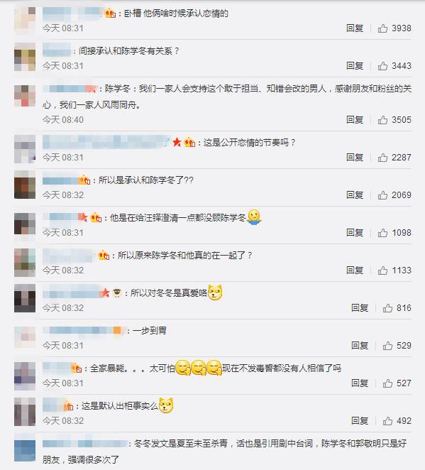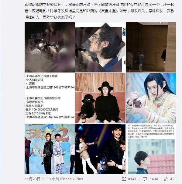 “郭敬明汪铎注册的公司地址是同一个,还一起看午夜场电影!陈学冬发微博虽说是和郑爽的《夏至未至》杀青,却很双关,意味深长,郭敬明捧新人,而陈学冬失宠了吗?”