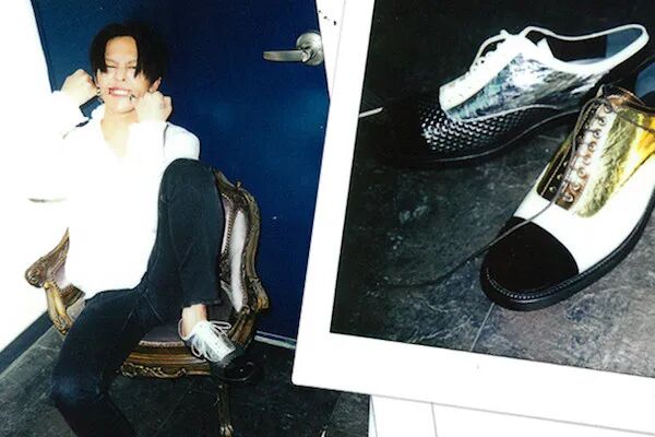 Martine Rose 的方头 Loafers 也是权志龙非常喜欢的鞋款,而在这双鞋上,他再次发挥自己“从不好好穿鞋”的属性,在鞋面加入了 Chanel 的 Pin ,以及加入绑带,皮鞋也玩起来了。