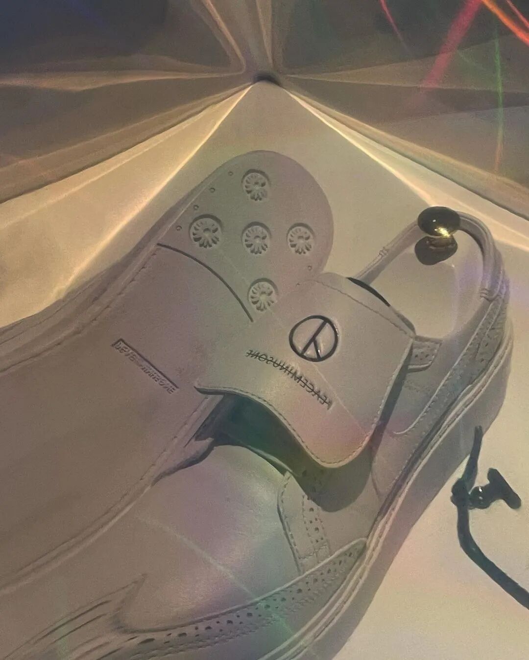 回到这次权志龙的 Kwondo 1 ,它确实有着皮鞋的许多特征:Wing-Tip 以及雕花,也是因为这些雕花才让大家将其联想到当年的 Cole Haan 。不过大家可以从中底看到,其实 Kwondo 1 更接近于平时的普通板鞋/平底鞋,只不过鞋面像皮鞋,所以 Kwondo 1 或许是一双“披着皮鞋样子的板鞋”。