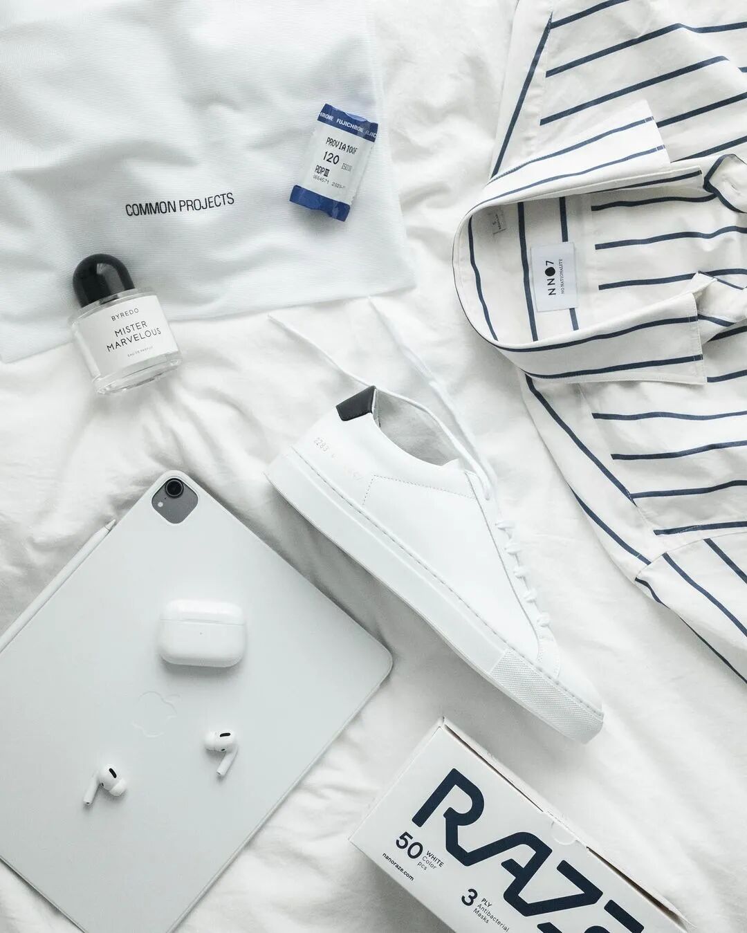 说到小白鞋就必须要提到的品牌那就是 Common Projects ,虽然价格有点小贵,但是出色的质感绝对值回票价。